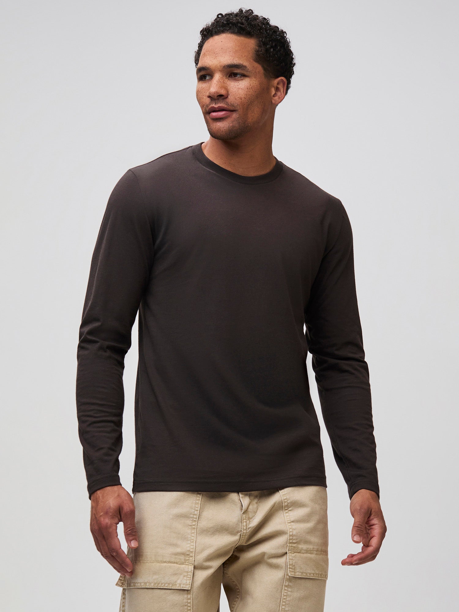 This long sleeve crew neck in deep espresso brown earns its place in your rotation. StratuSoft™ comfort meets old-school durability. This shirt handles weekend projects and dinner dates with equal confidence. Real quality for real life.
