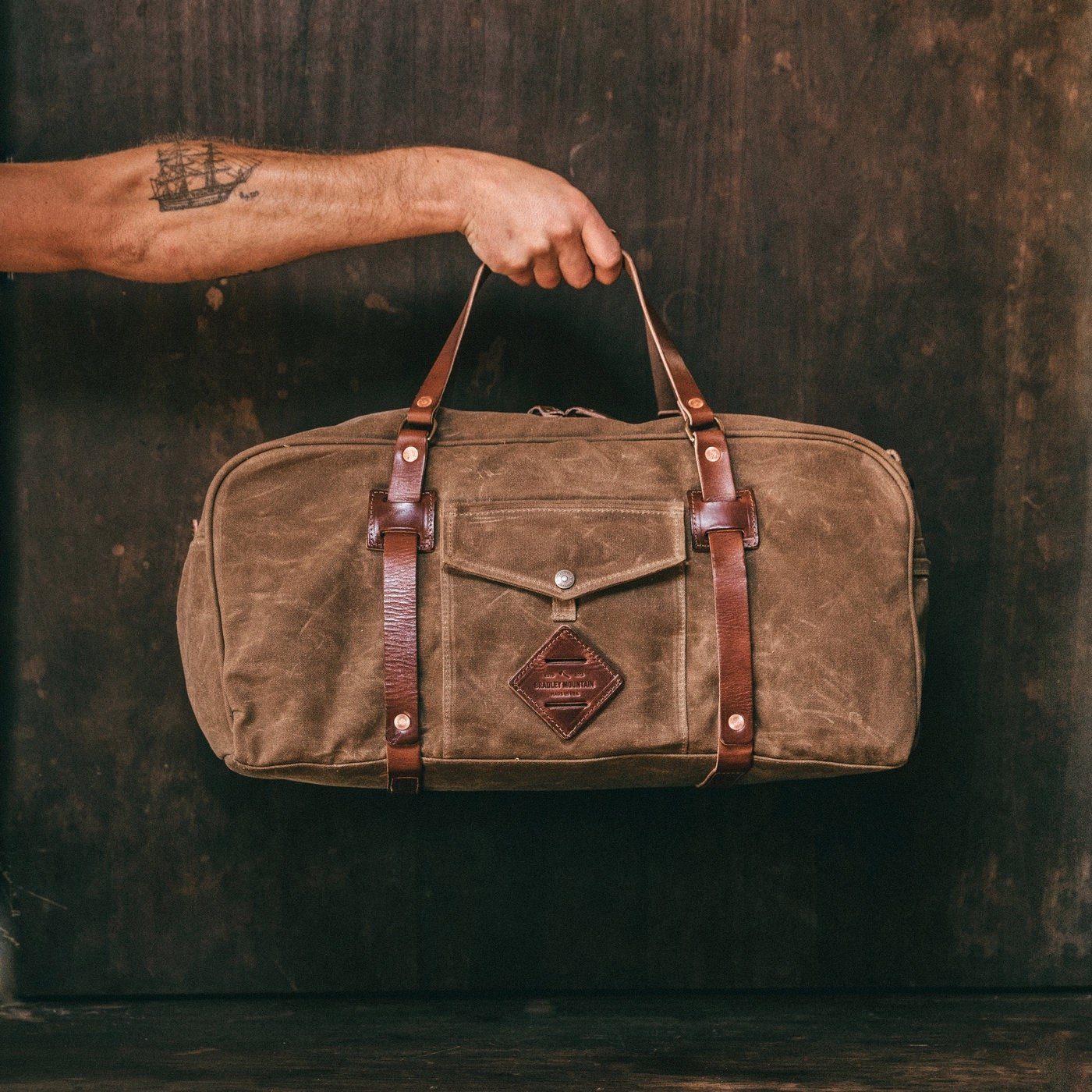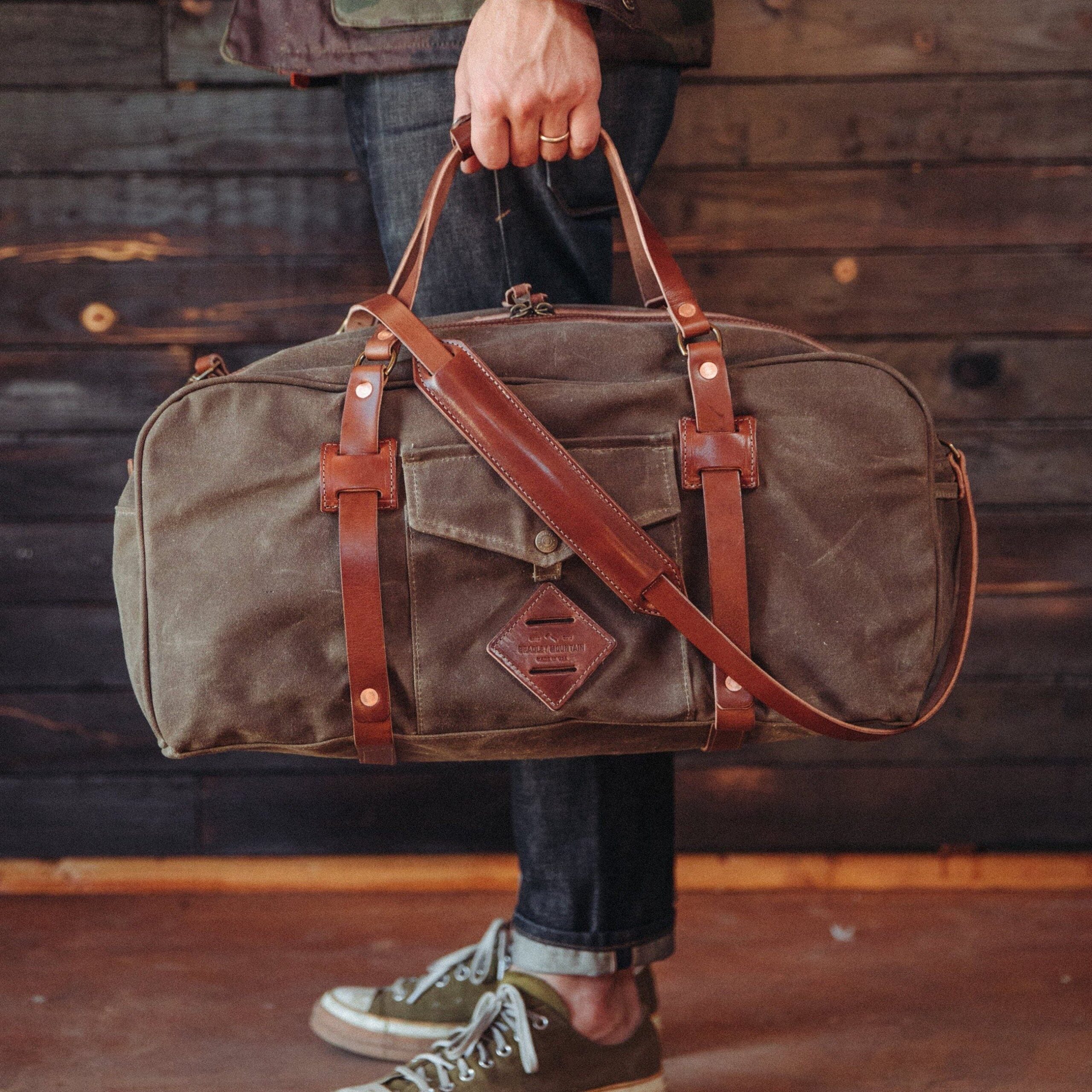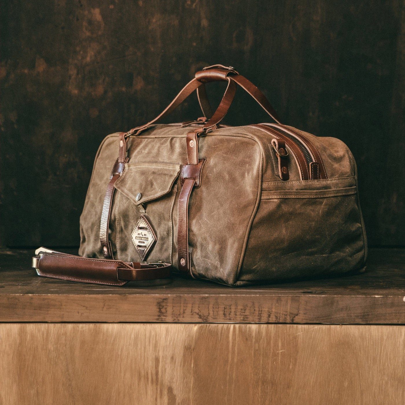 The Ranger is the perfect duffle for all of your traveling needs. 3 easy to access pockets surround the bag (and 1 zipper interior pocket), making it a perfect airport companion. 18 oz waxed duck canvas 9 oz USA harness leather Removable Shoulder Strap Two-Way Leather Lined Antiqued Brass Zipper Length: 21.5″ Width: 12″ Height: 10″ Solid Brass and Copper Hardware Outside Zipper Pocket Size: 11″ x 8″ with Interior Key Clip Leash Outside Back Pocket: 17″x 8″ Inside Pocket Size: 8.5″ x 6.5″ 42L Volume USA MADE