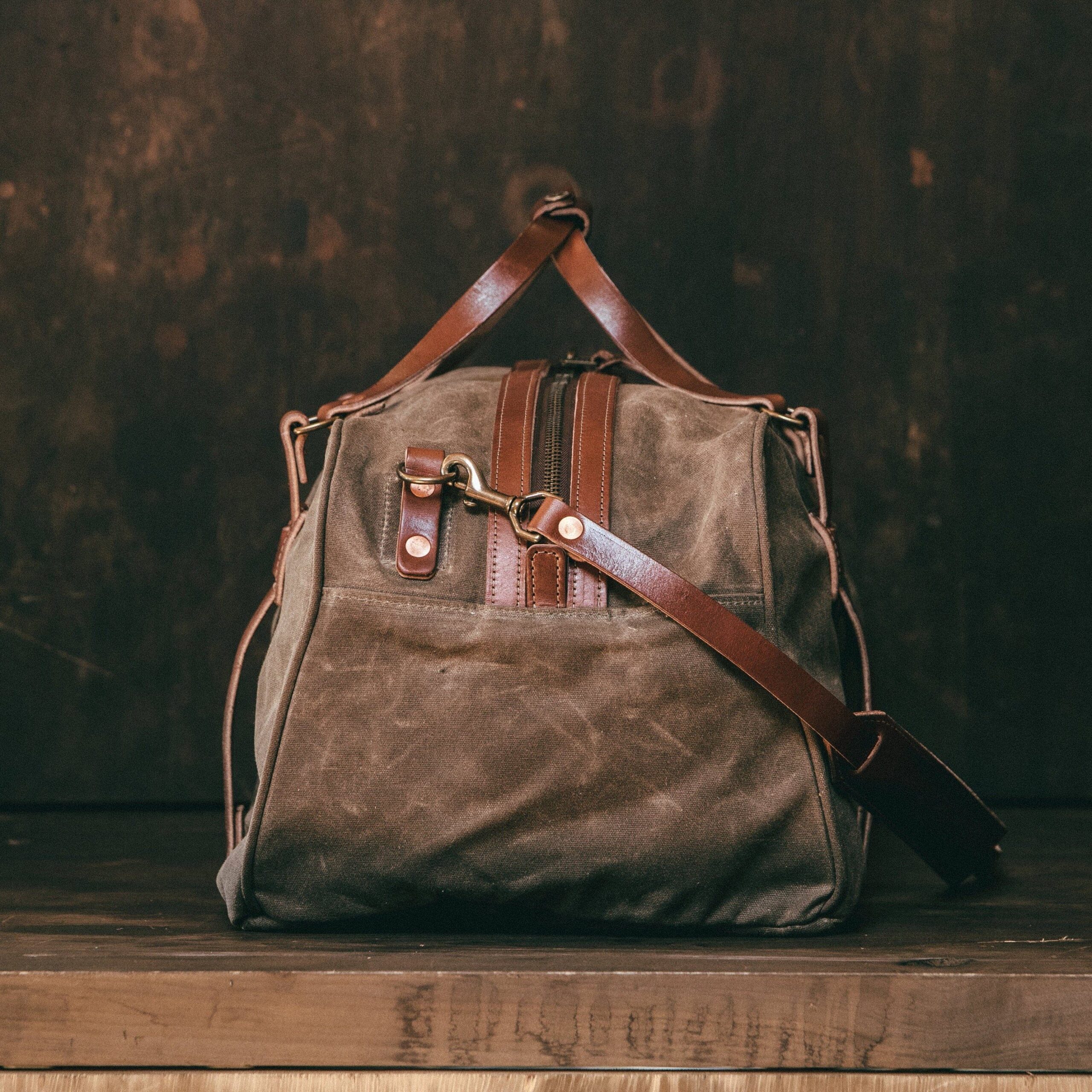 The Ranger is the perfect duffle for all of your traveling needs. 3 easy to access pockets surround the bag (and 1 zipper interior pocket), making it a perfect airport companion. 18 oz waxed duck canvas 9 oz USA harness leather Removable Shoulder Strap Two-Way Leather Lined Antiqued Brass Zipper Length: 21.5″ Width: 12″ Height: 10″ Solid Brass and Copper Hardware Outside Zipper Pocket Size: 11″ x 8″ with Interior Key Clip Leash Outside Back Pocket: 17″x 8″ Inside Pocket Size: 8.5″ x 6.5″ 42L Volume USA MADE